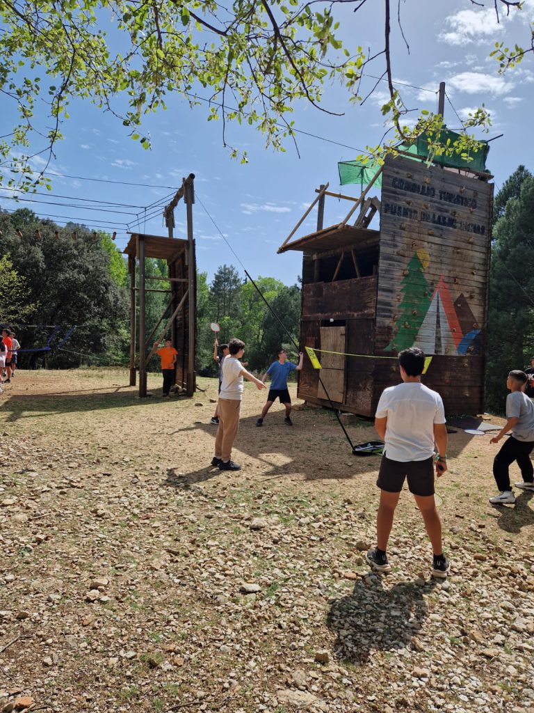Después nos repartimos las cabañas y por la tarde llegó la aventura: tirolina de 80 metros (con valientes que repitieron), partidos de vóley y hasta baños en el río… aunque el agua estaba congelada 🥶
